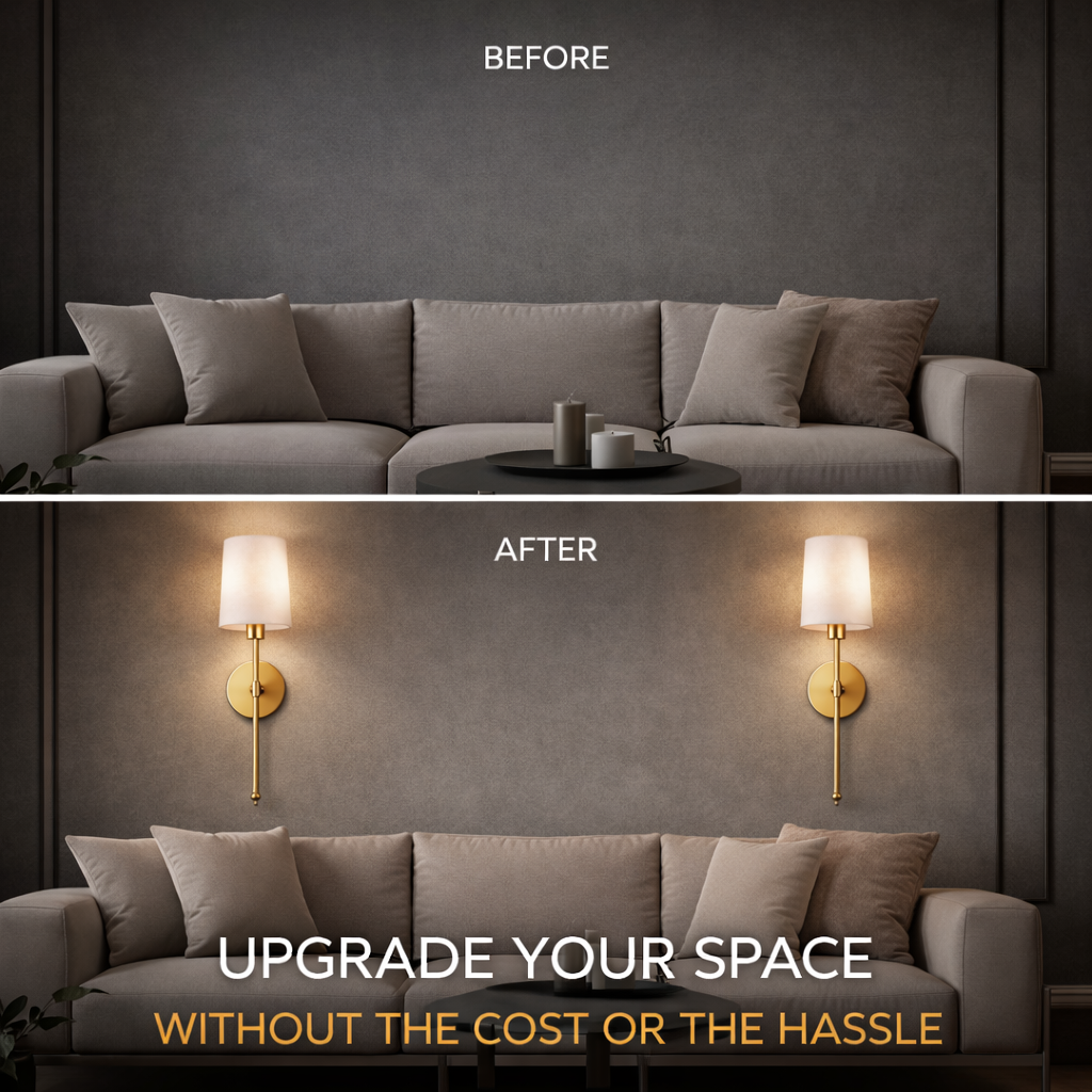 Skip the electrician and avoid costly renovations. Our wireless wall lights offer a designer look at a fraction of the cost, giving you high-end style without the expense, mess, or hassle.